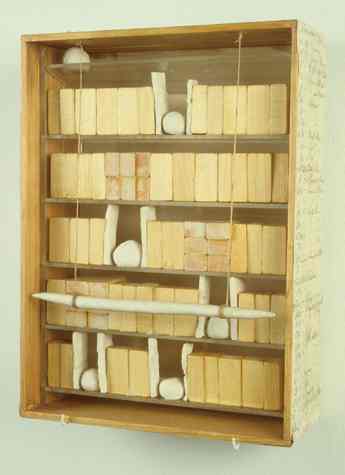 - box, 9"x13"x4", wood, clay, paste, twine, 2001