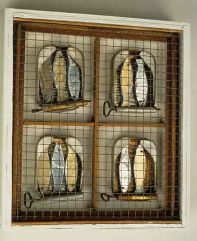 - box, 12"x14"x3", tin, paper, wood, 1996