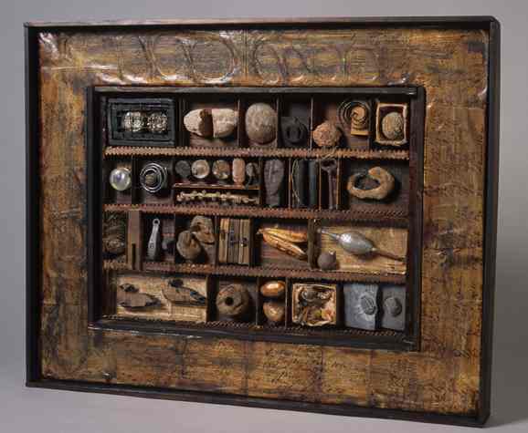 - box, 20"x24"x3", stone, wood, shells, paper, 1998